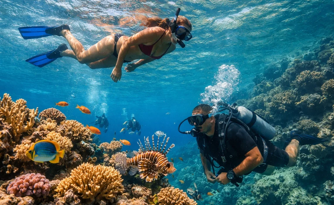 SnorkelingPodstawowa umiejętność pływania, maska/rurka0–1 m (zwykle przy powierzchni)Najprostszy i najtańszy sposób na rafęPrądy, łodzie, zmęczenie, panika w falach