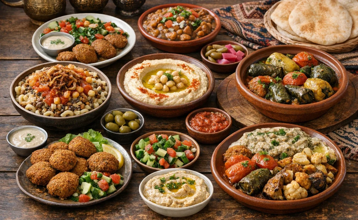Jeśli miałbyś spróbować tylko trzech wege smaków Egiptu, zacznij od tej trójki. Koshari to narodowy comfort food: miska makaronu, ryżu i soczewicy, często z ciecierzycą, podkręcona sosem pomidorowym, octowym sosem czosnkowym oraz chrupiącą cebulką. Brzmi prosto, ale w praktyce potrafi być uzależniające – szczególnie kiedy sosy są robione „na świeżo” i mają przyjemną kwaśność.