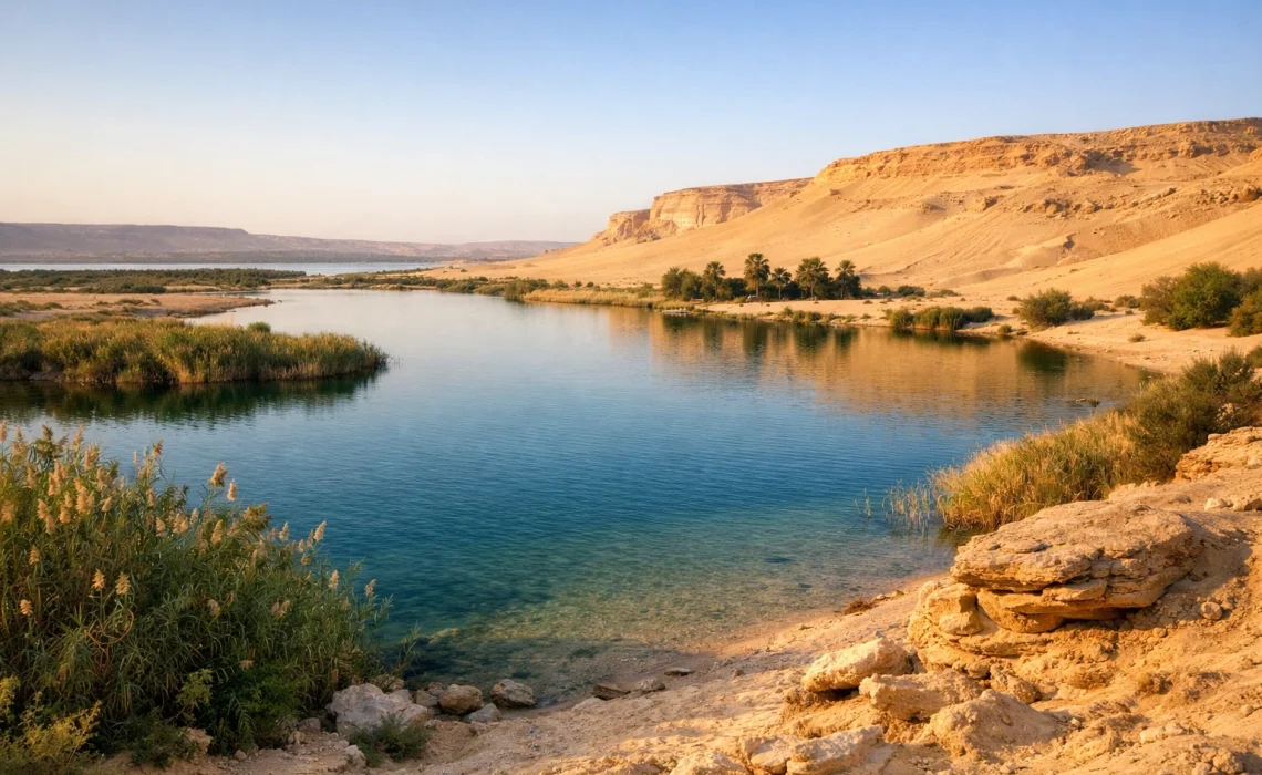 Choć Wadi Al Hitan (Dolina Wielorybów) kojarzy się głównie ze skamieniałościami i statusem UNESCO, to w praktyce jest częścią tej samej opowieści o wodzie na pustyni. Dawno temu był tu ocean, a dziś pozostały po nim ślady: szkielety pradawnych wielorybów i faktura skał, która w świetle poranka wygląda jak zastygła fala. W pobliżu nie ma klasycznego jeziora do pływania, ale jest coś równie cennego: poczucie, że woda „wciąż tu jest”, tylko w innym stanie.